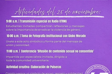 #SemanaVioleta#UTRNG#ExtensiónUniversitaria#VinculaciónUTRNG#PromociónYDifusiónUTRNG#25N#NoMásViolencia#EducaciónConPerspectiva#UniversidadesQueTransforman#RespetoIgualdadYJusticia