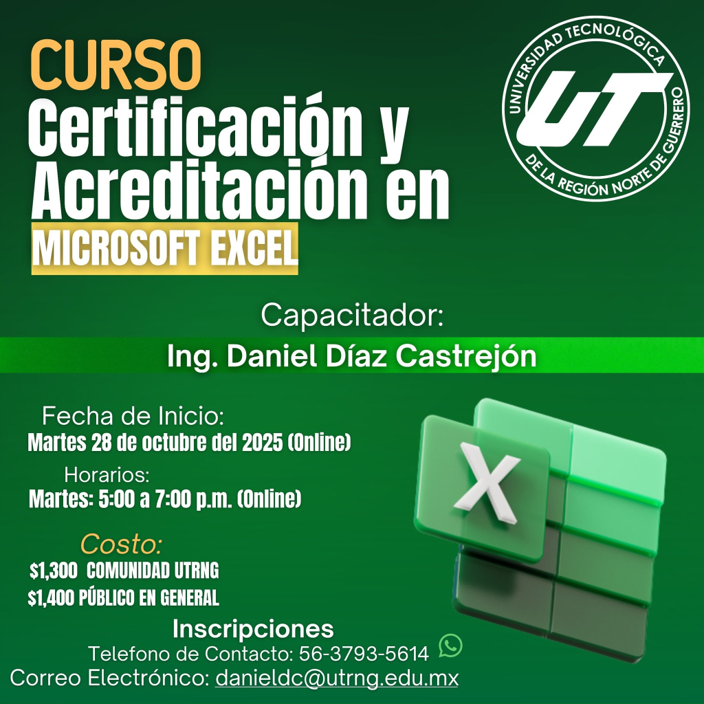 La Dirección de Vinculación, a través del Departamento de Educación Continua, te invita a inscribirte al Curso de Certificación y Acreditación en Microsoft Excel.