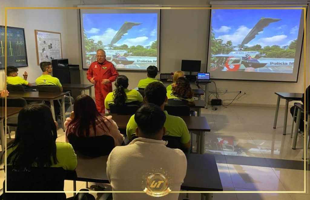 Durante la visita, el LAP Héctor Gregorio Vargas Sánchez impartió una capacitación sobre el servicio que ofrecen las Unidades de Rescate Aéreo, en la cual los estudiantes conocieron los protocolos de operación, el equipo especializado y las medidas de seguridad empleadas en situaciones de emergencia.